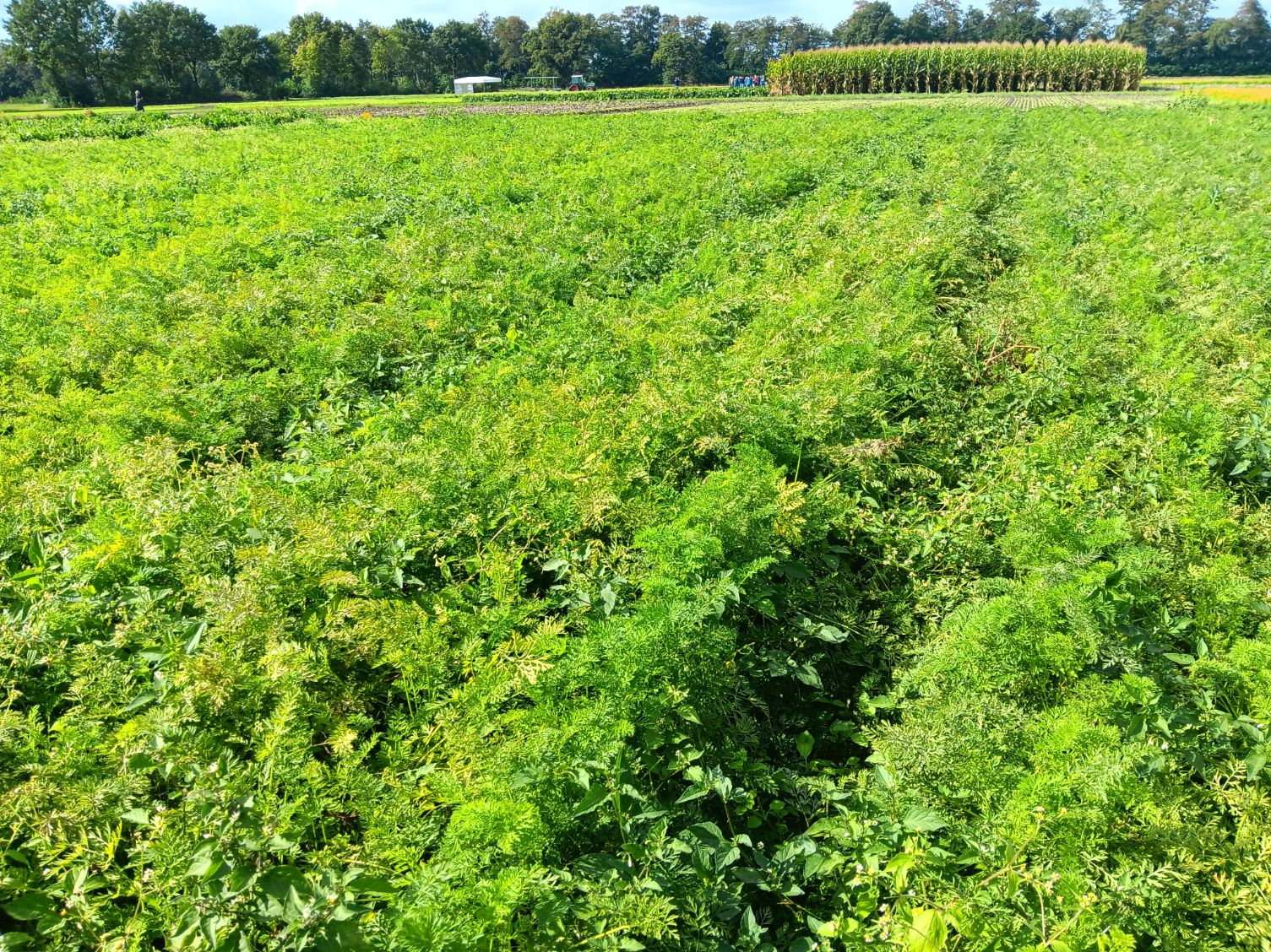 In de eerste vier jaar van de proef is niet geploegd. Daarna is toch besloten om in de fijnzadige gewassen als uien en peen te gaan ploegen vanwege de hoge onkruiddruk, vertelt Sprangers. Daarnaast zijn in een van de voorgaande jaren de aardappelen vroegtijdig doodgespoten, omdat de veronkruiding te hevig werd. „Tegen dat soort grenzen lopen we hier wel aan.”