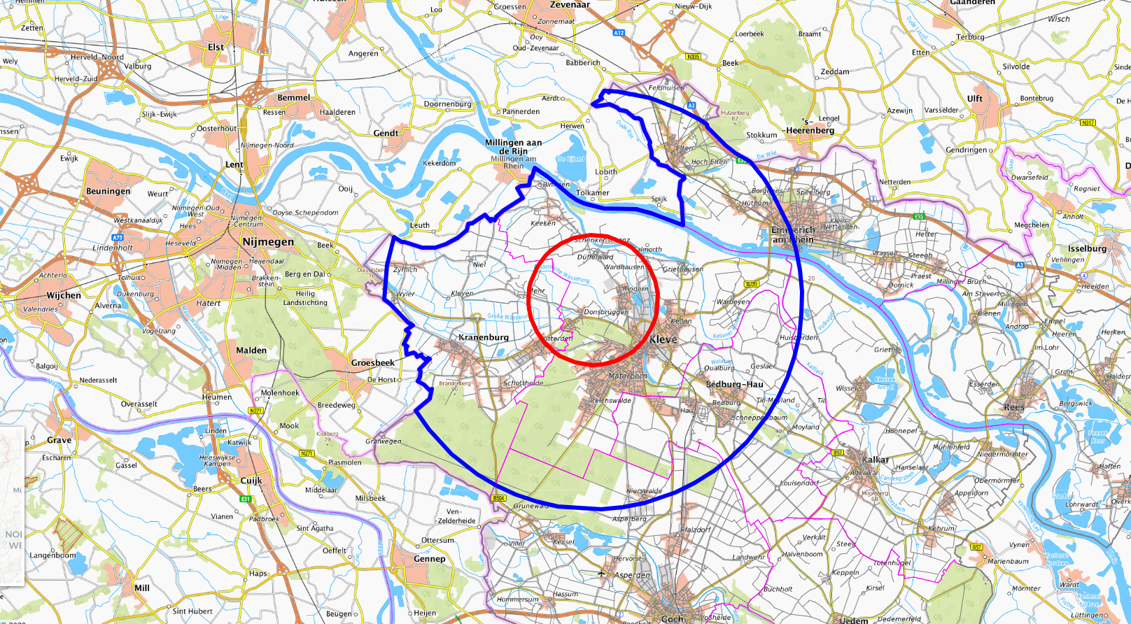 UPDATE | Deel van beperkingsgebied Kleef valt in Nederland