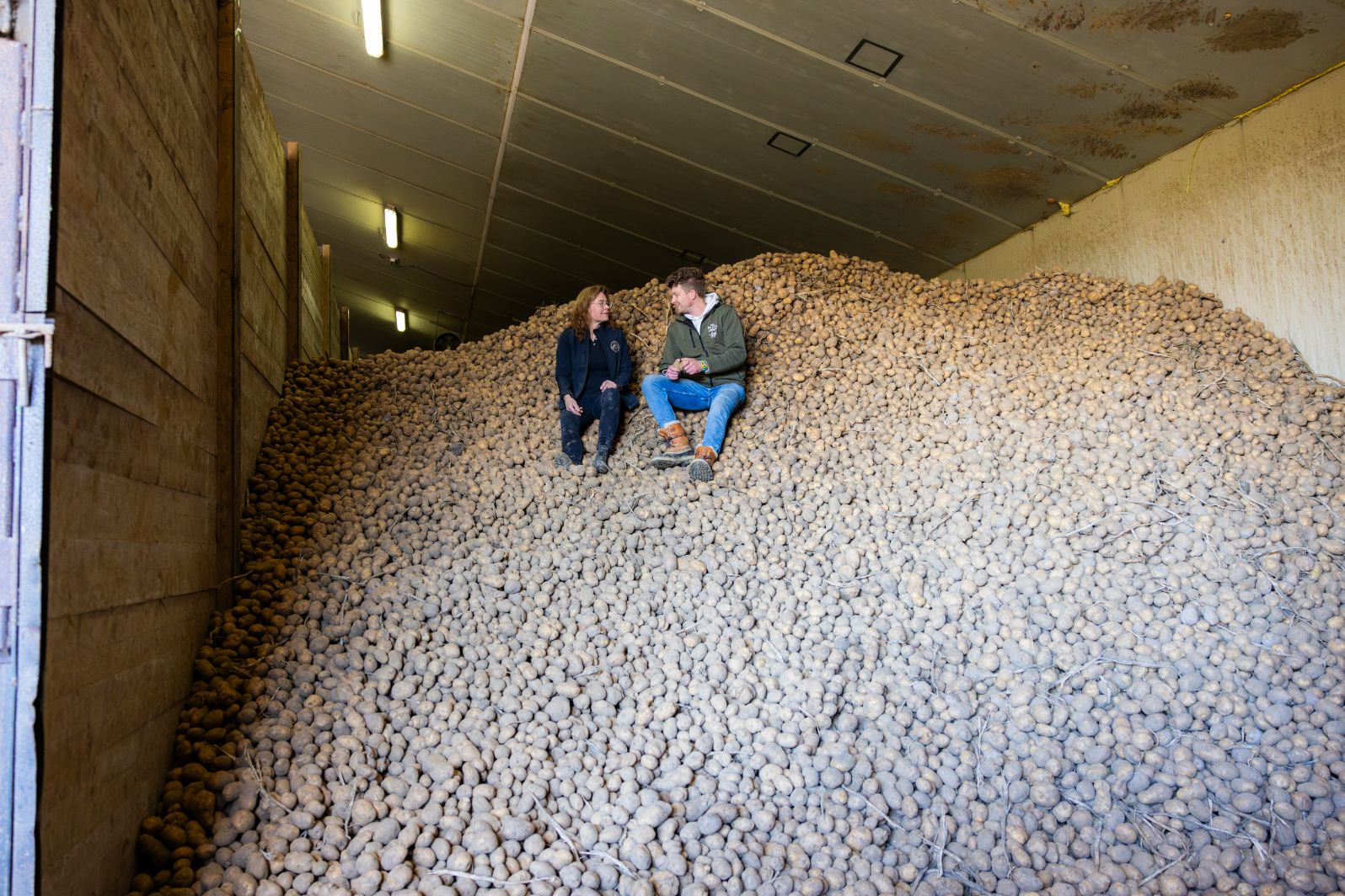 Hendrik Jan Koetsier in Waddinxveen: „Het is vaker voorgekomen dat aardappelen voor lage prijzen weggingen door een overvloedige oogst. Maar ik heb de afgelopen dertig jaar niet eerder meegemaakt dat aardappelen gewoon echt onverkoopbaar waren.” Er ligt nog 220 ton in de loods van Koetsier.