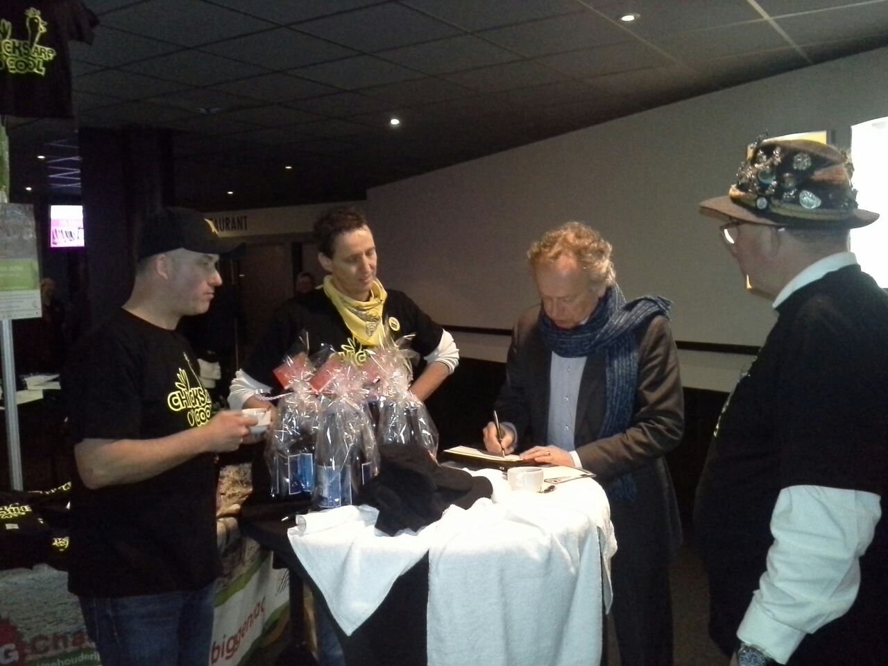 Bij binnenkomst kregen de bezoekers een hartelijk ontvangst met uitleg over BIG Challenge, ervaringen en de vraag of ze wilden sponsoren. De T-shirts, petten en bierpakketten vonden gretig aftrek. Vooral bij vertrek van de bezoekers.