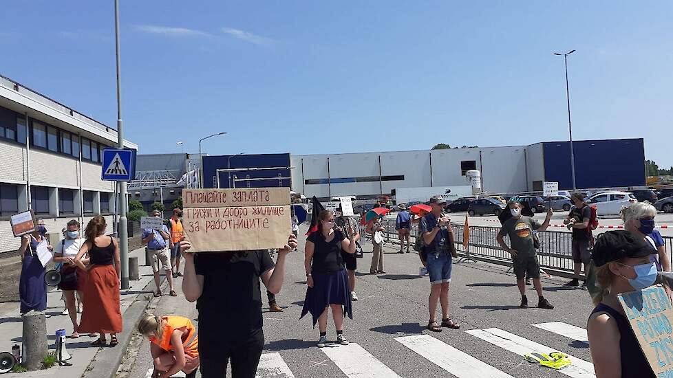 Er zijn ook buitenlands sprekende actievoerders met borden. Dit lijken echter geen werknemers te zijn van Vion.