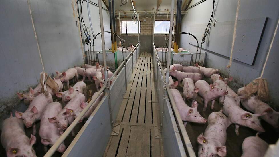 De varkenshouderij staat de komende jaren voor een grote uitdaging. De reductie van ammoniak zal namelijk flink omlaag moeten. De Stal van de Toekomst in Valkenswaard (NB) is daar al volop mee bezig via dagontmesting waarbij de mest dagelijks de stal uit wordt gespoeld, zonder verhoging van het mestvolume. Het resultaat: een ammoniakreductie van 85 procent die haalbaar is en de aanwezige luchtwassers zijn inmiddels buiten gebruik. „De varkens groeien meer dan 1000 gram per dag en de rek is er nog niet uit", vertelt bedrijfsleider Sjef de Bruijn (27).
